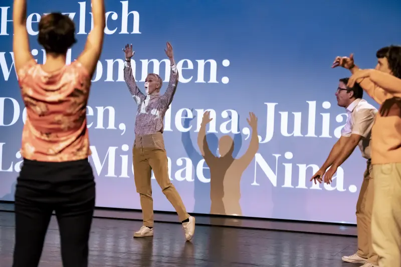 Am vierten Tag war es dank Deiner Übungen und Deinem konkreten Feedback für mich völlig normal, auf der Bühne zu stehen. Ich hatte das Gefühl ich bin nicht auf einer Bühne, sondern unterhalte mich mit einem guten Freund. Und was mich sehr beeindruckt hat, wie ich ohne Mikrophon den gesamten Raum füllen kann. Das hätte ich nie erwartet!